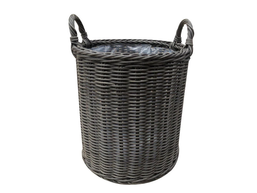 Potte Algot er en elegant, håndlaget potte i kunstrotting. Den er sylinderformet og utstyrt med håndtak, og kledd med innvendig plast for å forhindre lekkasje. Frostsikker. Diameter: 37 cm, høyde: 47 cm.