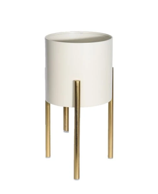 Fin potte i metall opphevet på gullfargede ben. Vanntett, uten dreneringshull og passer til innendørsbruk. En luksuriøs interiørdetalj til alle moderne hjem! Mål: Ø19 cm, høyde: 36 cm.