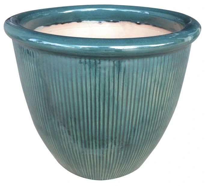 Tradisjonell potte for bruk utendørs, i frostsikker keramikk med hull for drenering. Diameter: 35 cm, høyde: 30 cm.