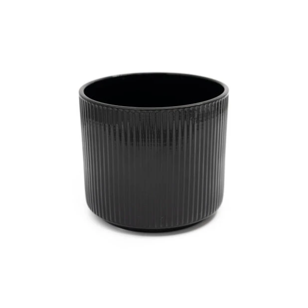 Stilren, potte i klassisk design med rillete, blankglasert overflate. Beregnet til innendørsbruk. Mål: Ø13 cm, høyde: 12 cm. Finnes i flere ulike størrelser og farger.
