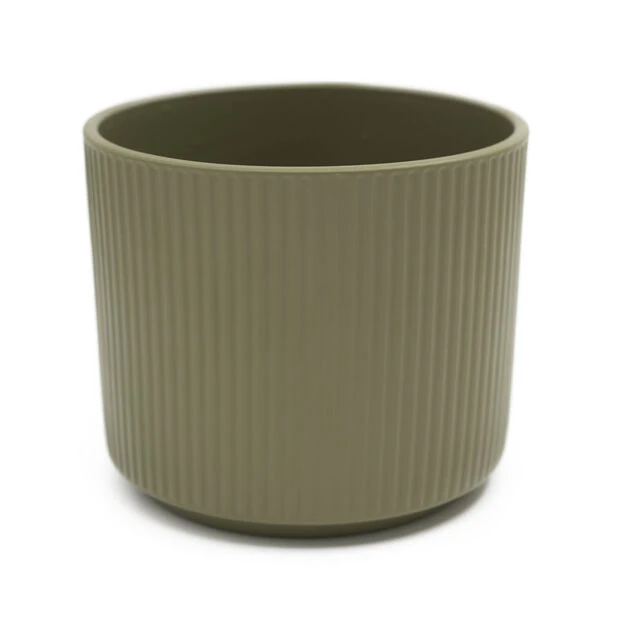 Stilren, potte i klassisk design med rillete, matt overflate. Beregnet til innendørsbruk. Mål: Ø16 cm, høyde: 14 cm. Finnes i flere ulike størrelser og farger.