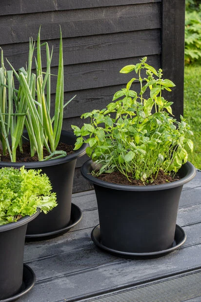 Traktformet kraftig ett lags potte i svart plast, i Botanica serien, diameter 60cm.