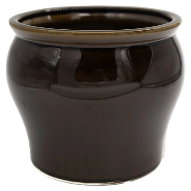 Stilig potte i keramikk med tidløst design og blank finish. Beregnet til innendørsbruk. Mål: Ø22 cm, høyde: 17 cm.