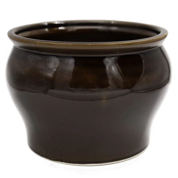 Stilig potte i keramikk med tidløst design og blank finish. Beregnet til innendørsbruk. Mål: Ø29 cm, høyde: 20 cm.