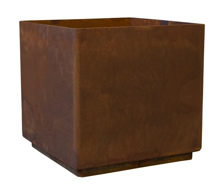 Stilig og rustikk potte i cortenstÄl med fin rustet overflate. Skaper fine kontraster mot grÞnt i hagen. MÄl: 50 x 50 x 50 cm.