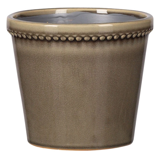 Elegant, men samtidig enkel potte i stilige gråe nyanser med lett boblete kant øverst. Stilige detaljer i glasuren som gjør at potten har et unikt og stilig uttrykk. Til innendørsbruk.