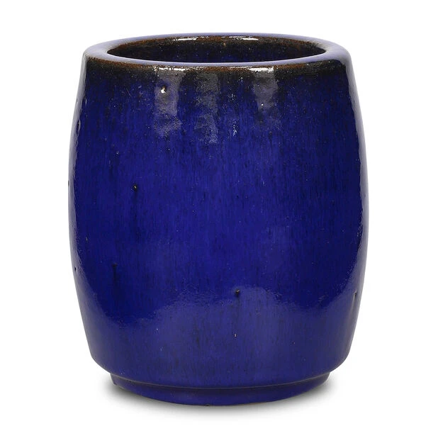Elegant og stilig utepotte i glasert keramikk med kraftig blank farge. Beregnet til utendørsbruk. Diameter: 14 cm, høyde: 18 cm. Frostsikker med dreneringshull i bunnen.