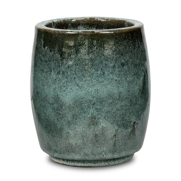 Elegant og stilig utepotte i glasert keramikk med kraftig blank farge. Beregnet til utendørsbruk. Diameter: 14 cm, høyde: 18 cm. Frostsikker med dreneringshull i bunnen.