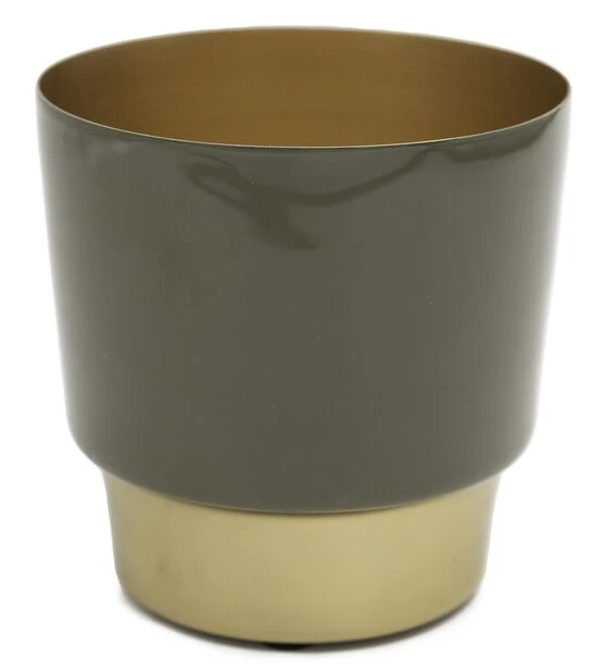 Elegant potte i blankglasert metall med stilig innsving nederst i gull. Klassisk design som er perfekt til julens og vinterens blomster. Beregnet til innendørsbruk. Mål: Ø12,5 cm, høyde: 12,5 cm.