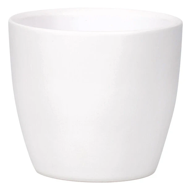 Moderne og tidløs hvit potte med glatt overflate og lett innsvingning helt nederst. Tilfører stil samtidig som den løfter inneplantene! Til innendørsbruk.
