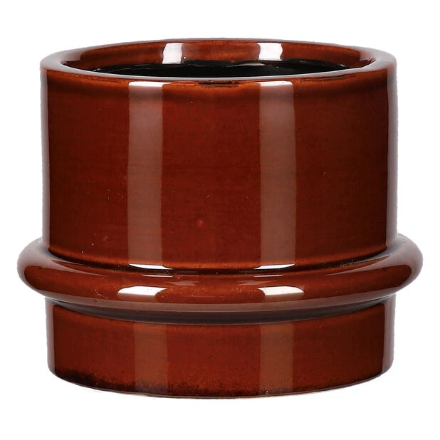 Lekker, rødbrun potte i glasert keramikk. Skaper herlig blikkfang i interiøret samtidig som den fremhever kontraster til inneplantene. Til innendørsbruk.
