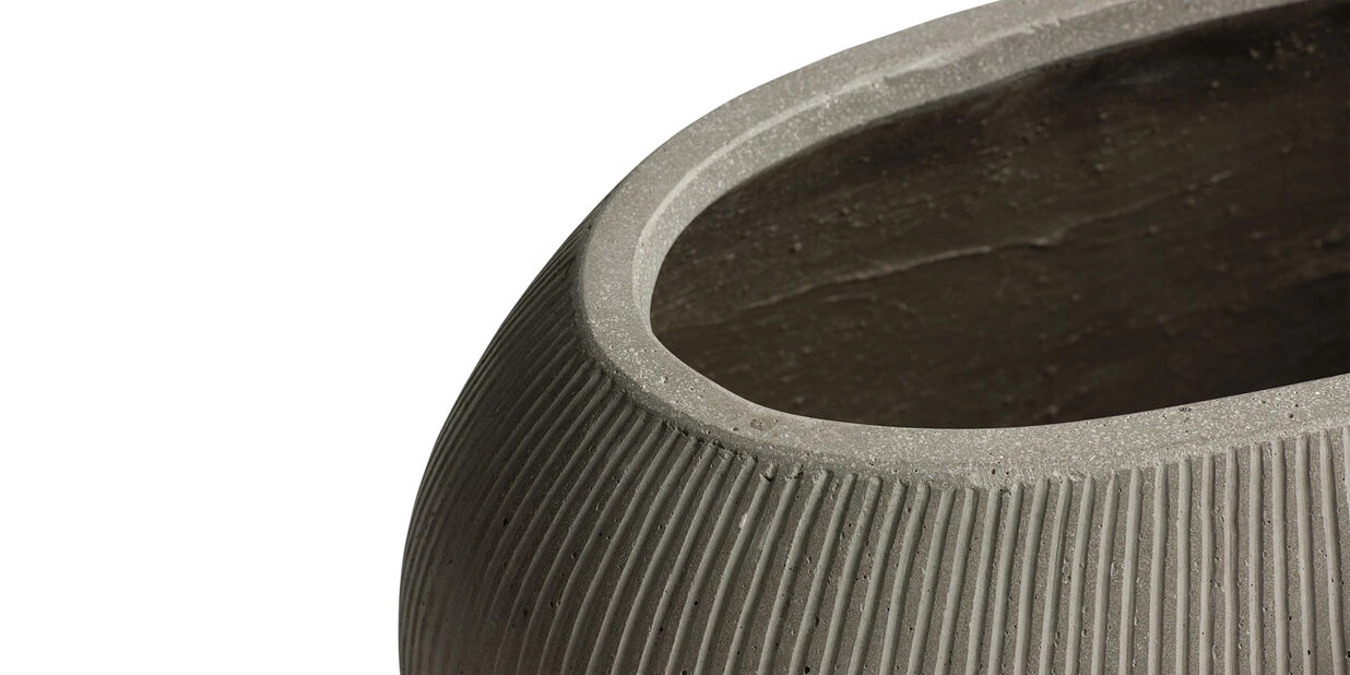 Moderne og stilig potte til utendĂžrsbruk i frostsikker lettvektssement med hull for drenering. 46x23x22 cm