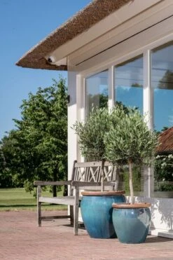 Klassisk og tidløs keramikkpotte med glasert overflate som blinker vakker i solen. Frostsikker med dreneringshull i bunnen. Perfekt for en frodig uteplass. Mål: Ø36, høyde: 30 cm.