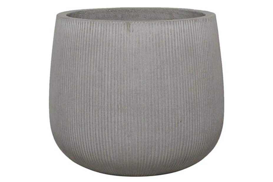 En moderne potte i frostsikker lettsement med et fint, ribbet mønster. Potten har dreneringshull i bunnen. Diameter: 40,5 cm, høyde: 36 cm