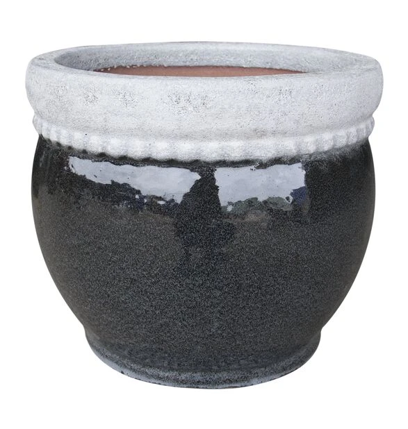 Håndlaget og dermed unik. Potten er beregnet for bruk utendørs, og har dreneringshull. D: 29 cm, H: 24 cm. Passer for innerpotter med diameter 19 cm.
