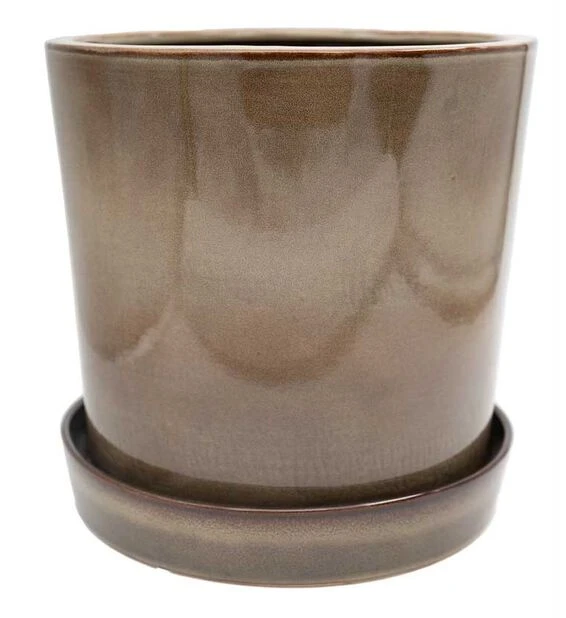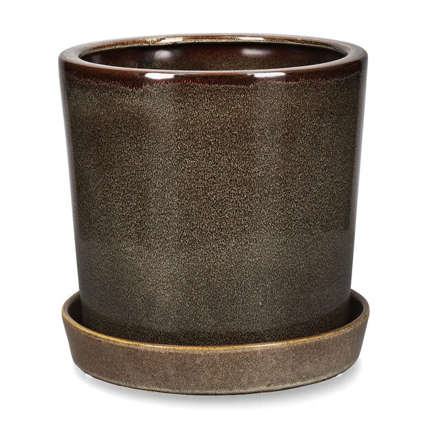 Klassisk og tidløs potte i keramikk med fat i duse og behagelige jordtoner. Kontrasterer flott til frodige, grønne planter. Beregnet til innendørsbruk. Mål: Ø21,5 cm, høyde: 22 cm.