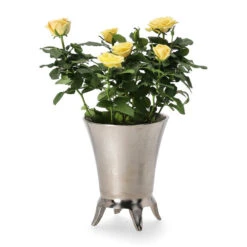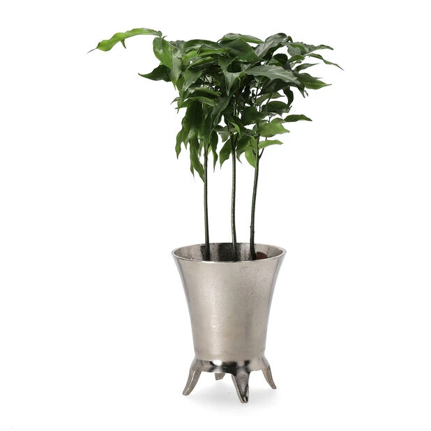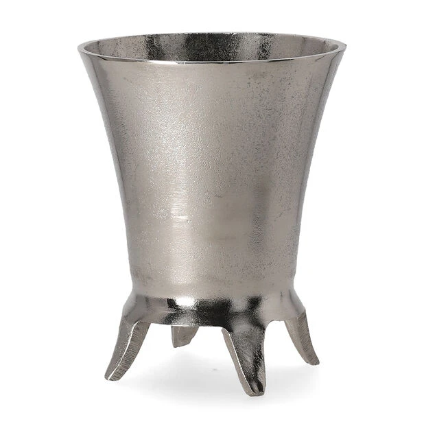 Klassisk høy potte i blank sølvfarget aluminium med ben nederst. Passer perfekt til høye planter som orkidéer. Beregnet til innendørsbruk. Mål: Ø15 cm, høyde: 19 cm.