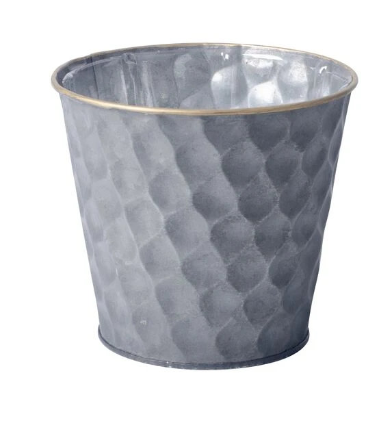 Tradisjonell sinkpotte med struktur og messingfarget overkant. Ø 43 cm og 35 cm høy, passer 35 cm innerpotter. Potten har en tynn plastinnsats, men den bør kombineres med en tett innerpotte, et potteunderlag eller vanntett fat som beskytter mot fukt på underlag. Til innendørs bruk.