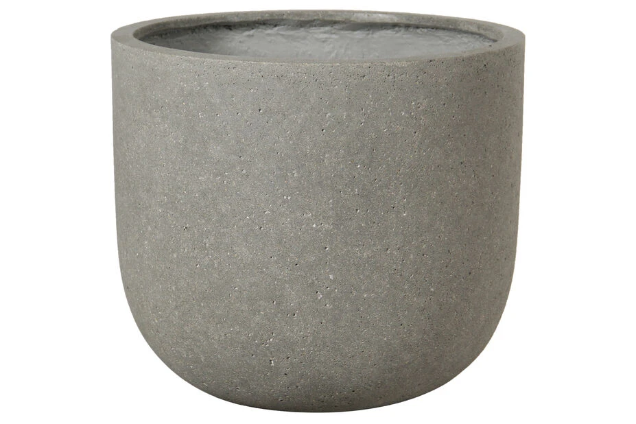 Moderne og stilig rund potte for bruk utendørs. I frostssikker lettsement med dreneringshull. Diameter: 46 cm, høyde: 41 cm, innvendig mål: 35 cm. Nova-fat med diameter 38 cm passer her.