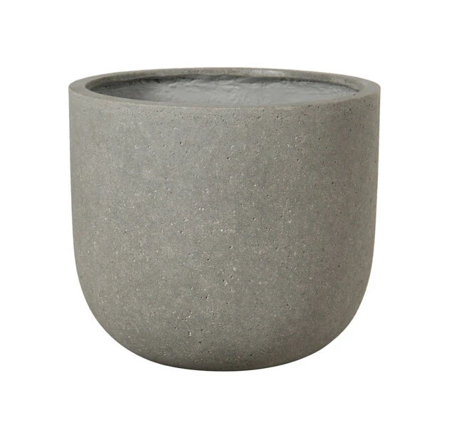 Moderne og stilig rund potte for bruk utendørs. I frostssikker lettsement med dreneringshull. Diameter: 55 cm, høyde: 49 cm. Nova-fat med diameter 44 cm passer her.