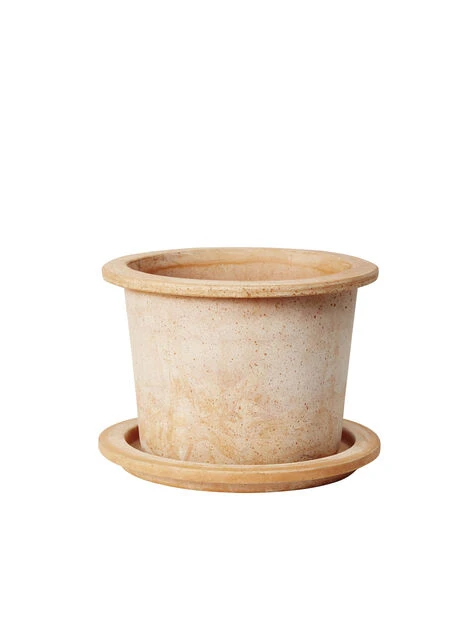 En rund, stilren potte i italiensk terrakotta. Unik design av Johan Kroon, spesielt for Plantasjen. Flott i kombinasjon med andre potter i Olea-serien. Frostsikker ned til –25 grader. Diameter: 38 cm, høyde: 25 cm.