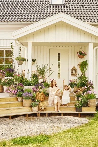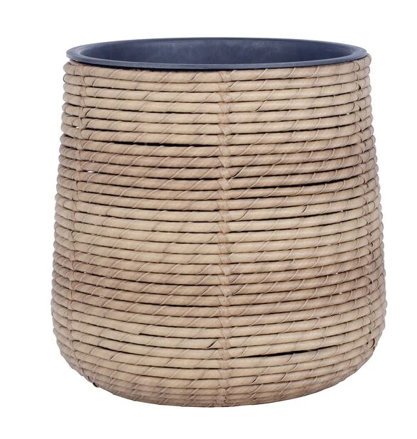 En moderne og stilren naturfarget potte i kunstrotting med svart plastinnsats. Mål: ytterdiameter 37 cm, høyde 39 cm og passer til innerpotter med diameter 27 cm. Fås også i en mindre størrelse.
