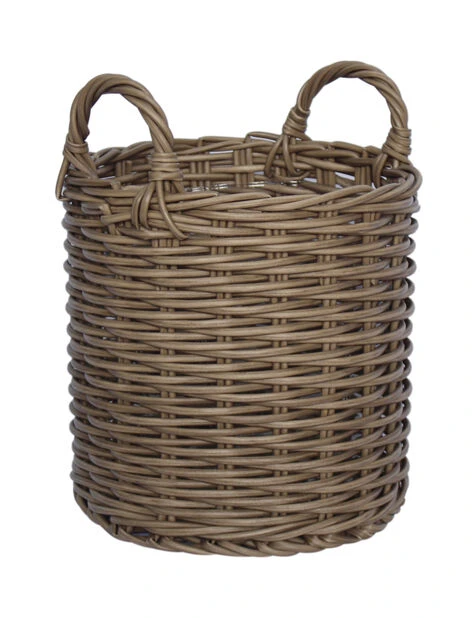 Håndlaget potte i kunstrotting. Potten, eller kurven, er laget av plast og har to håndtak. Innvendig innsats i hardplast. Frostsikker. Til innendørs og utendørs bruk. D: 30 cm, H: 29 cm.