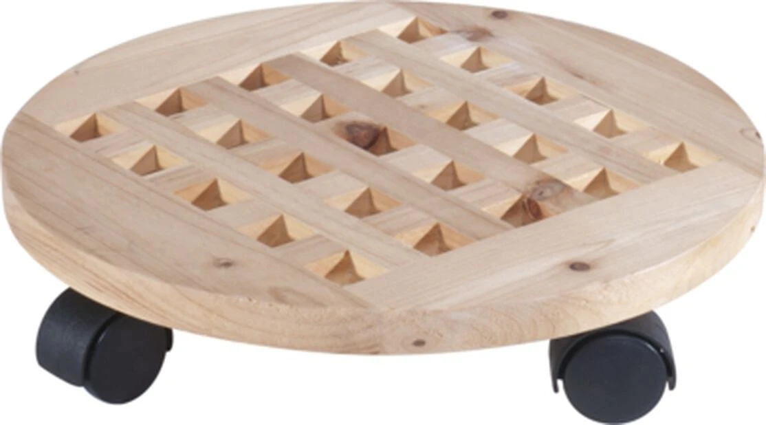 Pottetralle av tre med plasthjul. Gjør det lett å flytte tunge potter og store planter. Til innendørs bruk. Diameter 30 cm. Maks. belastning: 25 kg.