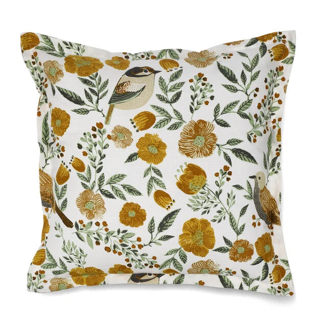 Fargerik pute med blomster i forskjellige farger. Vannavvisende bomulltrekk med polyesterfyll og glidelås i bunn. Oeko-tex-sertifisert, fri for helseskadelige kjemikalier. Til innen- og utendørsbruk.