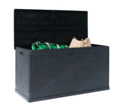 Putekassen Emina er en klassisk putekasse for oppbevaring av puter, pledd og andre ting som du ønsker å beskytte mot vær og vind. Putekassen fungerer like godt innendørs for oppbevaring av for eksempel leker, det er du som setter grensene. Putekassen Emina er i sort PP-plast som formdannes for et treaktig utseende. Putekassen er vanntett og frostsikker, og kan stå utendørs hele året.