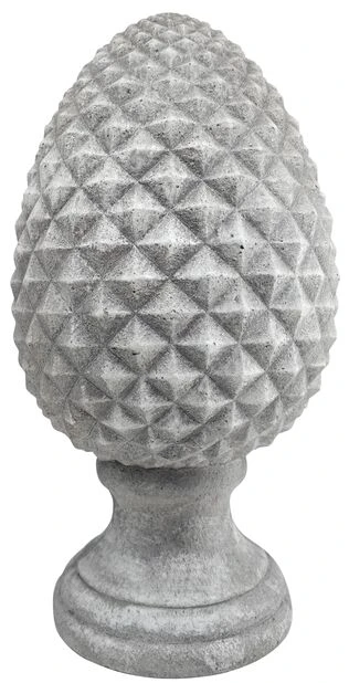 Vakker, grå pyntekongle til hagen og uteplassen. Pynt opp hagen med vakre skulpturelle kongler som gir et stilrent uttrykk. Matt, grå hagedekorasjon. Fås i flere ulike størrelser.