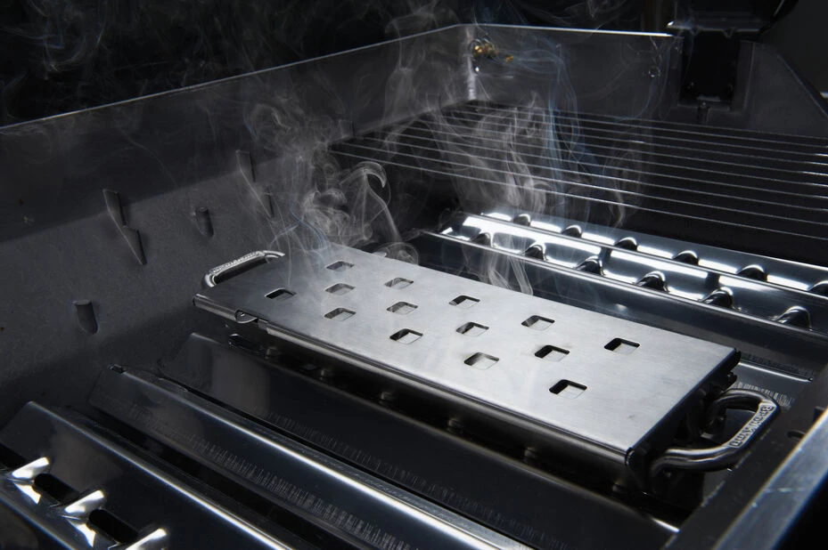Broil King-røykboks Imperial i rustfritt stål er utformet for å legges på stålbølgene Flav-R-Wave. Med to kamre for dobbelt så kraftig røyking og integrert luftspjeld i det hengslede lokket er denne profesjonelle røykboksen noe utover det vanlige. Den kan også brukes med væsker for ekstra fuktighet og smak, eller med kombinasjoner av spon og væsker som gir uendelige smakskombinasjoner. 35x11x4 cm.