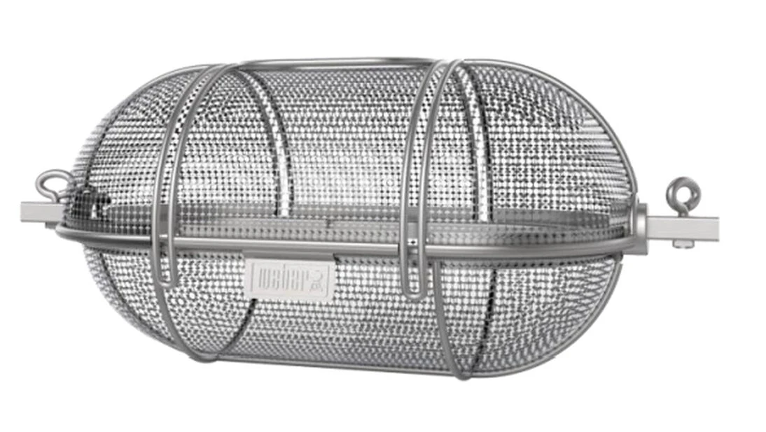 Rotisserikurv for praktisk grilling av kjøtt og grønnsaker. Webers rotisserikurv er et praktisk grilltilbehør som roterer og sirkulerer varmen for en jevn og crispy grillflate på dine favorittgrønnsaker. Krever grill-rotisserienhet for bruk. Mål: H 18,9cm x L 48,13cm X D 20,07cm.