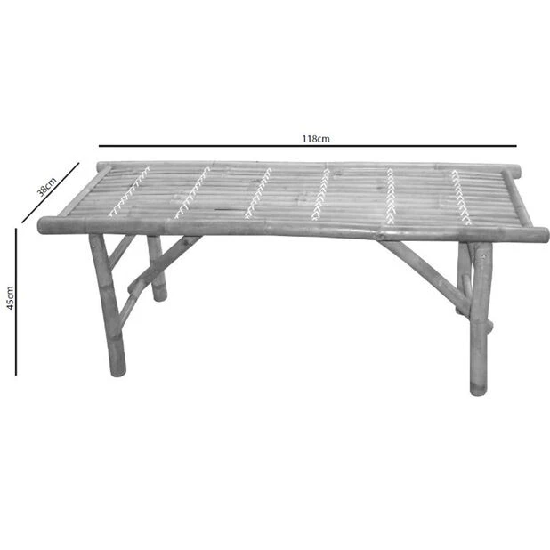 Skap et hyggelig rom i hagen, pÄ terrassen eller balkongen med stilrene utemÞbler i bambus! Manila Bamboo sammenleggbar benk er en minimalistisk benk med naturnÊr design i stabil bambus. Denne stilrene benken har mange bruksomrÄder. I tillegg til Ä fungere som en komfortabel sitteplass kan du bruke benken som hylle til sommerblomster, eller hvorfor ikke som et praktisk avlastningsbord? Den klassiske, minimalistiske designen i rolige, naturlige farger gjÞr at benken bÄde er iÞynefallende og harmonisk, avhengig av hvordan du vil ha det. Benken er lett Ä slÄ sammen for plasseffektiv oppbevaring, og enkel Ä flytte pÄ nÄr du trenger flere sitteplasser. I Manila Bamboo-serien finner du mange forskjellige komponenter du kan sette sammen til et matchende mÞbelsett som du kan nyte fra vÄrens fÞrste solstrÄler til hÞstlÞvet faller fra trÊrne. Oppbevar benken innendÞrs om vinteren, eller pÄ et beskyttet sted med mÞbeltrekk for Ä beskytte den mot vÊr og vind. MÞblenes innsatser bestÄr av galvanisert stÄl som er rustfritt med lang holdbarhet. MÄl: hÞyde 45 cm, lengde 118, bredde 38 cm. Maksimal vektbelastning: 120 kg.