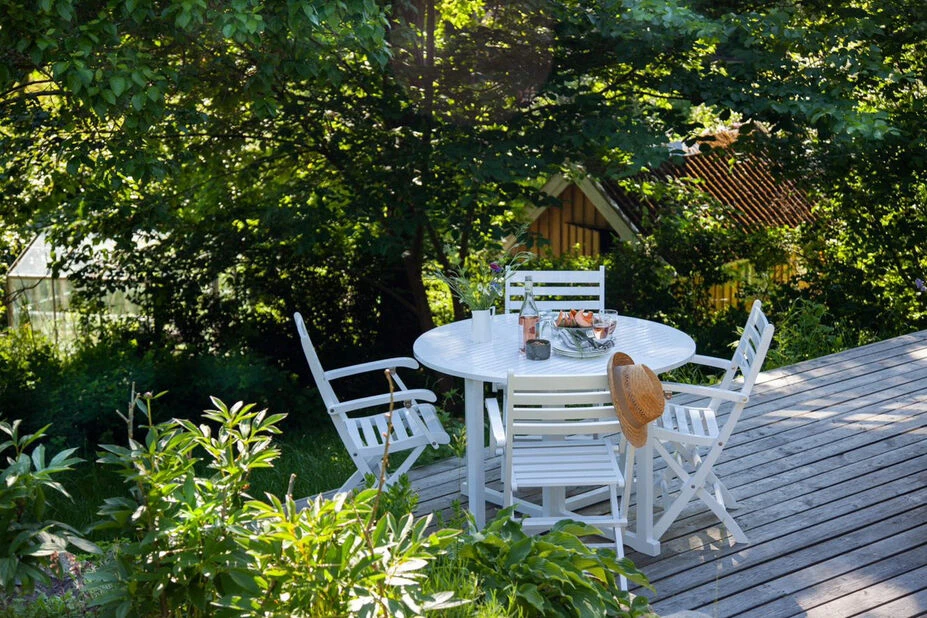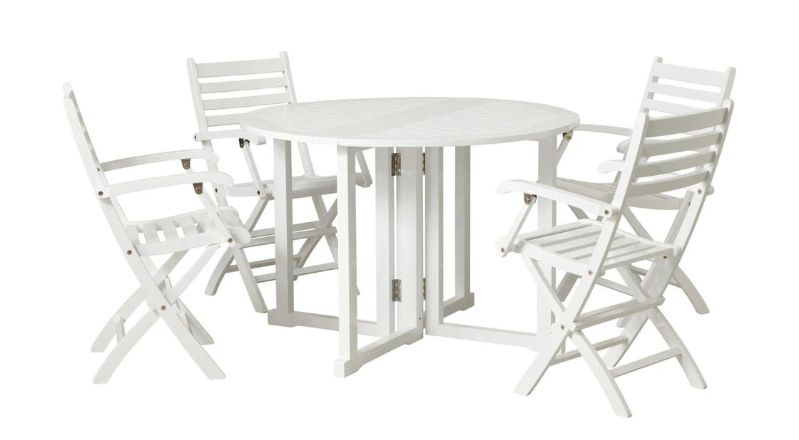 • Klassisk, hvit, sammenleggbar kaféstol til balkongen, terrassen og uteplassen.