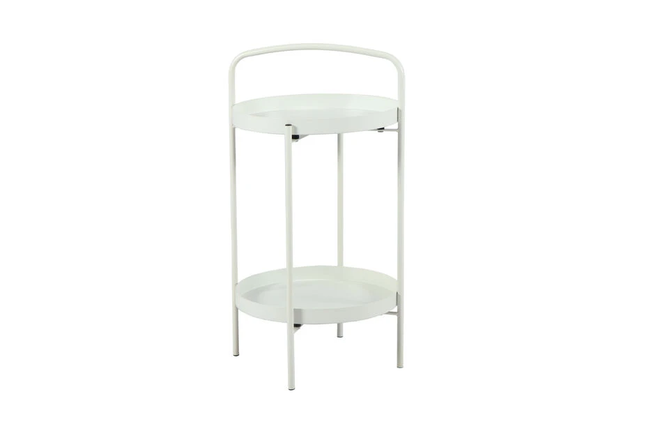 Moderne, praktisk sidebord med håndtak og hylle. I pulverlakkert stål. Mål: Ø 39 cm, høyde 70 cm.
