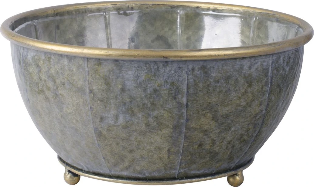Tradisjonell skål i metall med oksidert metallfinish. Finnes i flere ulike modeller. Ikke fjern plastinnsatsen fra potten, den gjør potten vanntett.