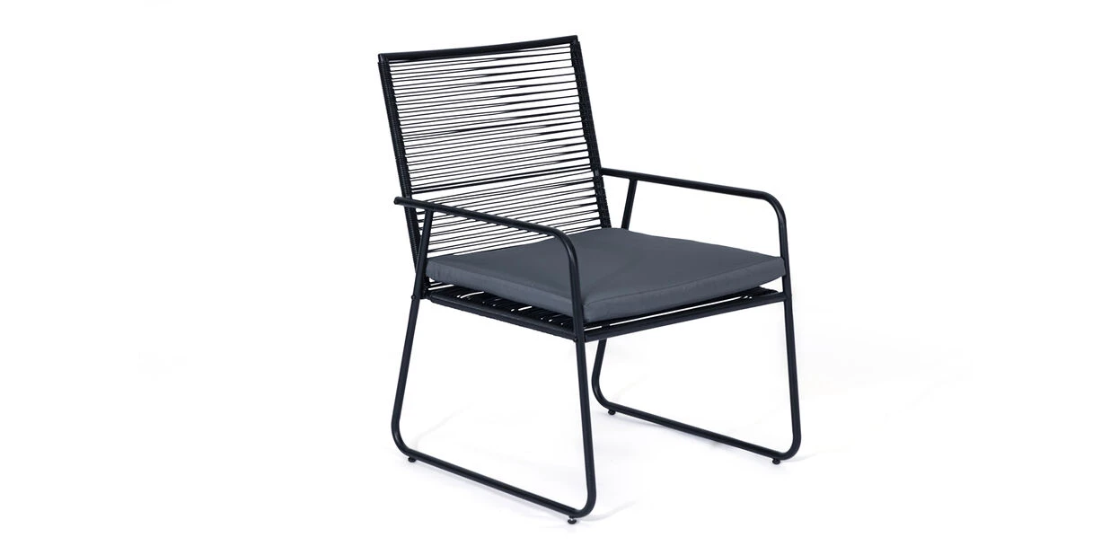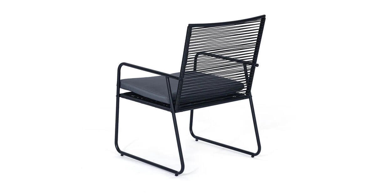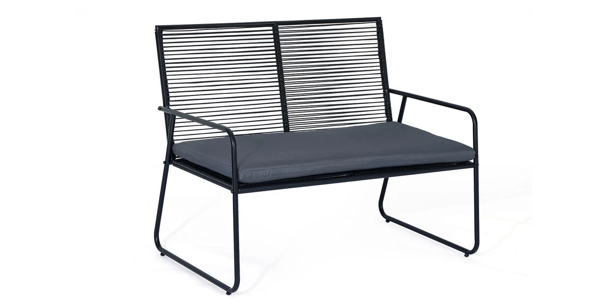 Hvis du er ute etter en flott og lettplassert sofagruppe til terrassen eller en stÞrre balkong, kan Venezia vÊre det rette for deg. Sofagruppen er laget av svart, pulverlakkert stÄl og tau, og gir uteplassen en moderne designfÞlelse. Piff gjerne opp gruppen enda mer med noen puter, pledd og en plante pÄ bordet.
