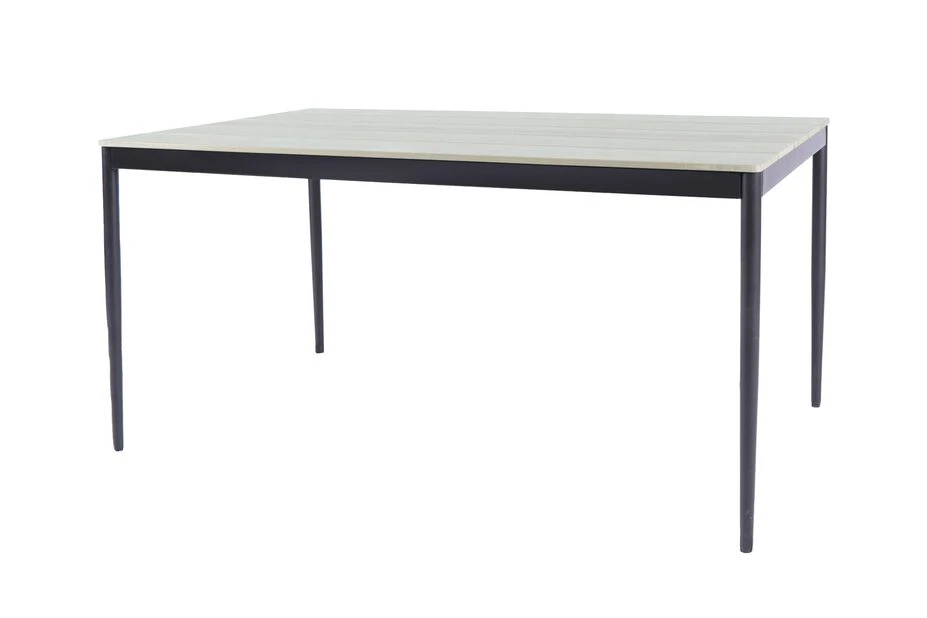 Enkelt og elegant spisebord til mindre terrasser eller uterom. I lettstelt nonwood. Mål: 150 x 90 cm, høyde 68cm.
