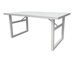 Denne elegante og praktiske spisegruppen består av komfortable stoler i aluminium med seter i slitesterk textilene som er herlig å sitte i og perfekt når du vil slippe vedlikehold av utemøblene dine. Bordet er laget av aluminium og har en romslig, ribbet bordplate. Lettstelt, flott og praktisk på terrassen eller en større balkong!