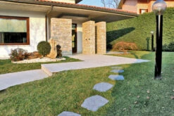 Moderne, grå tråkkhelle i slitesterkt stengods fra Granulati Zandobbio. Skap rustikke blikkfang i hagen ved å legge stier av tråkkheller. Frostbestandige heller med sklisikre overflater.