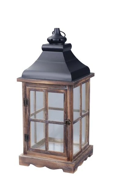 Tradisjonell trelykt med klassisk rutevindu, sider i glass og svart metalltak. Til bruk innendørs eller utendørs pü skjermede steder. Høyde 60 cm, bredde 26 cm. Füs i to størrelser.
