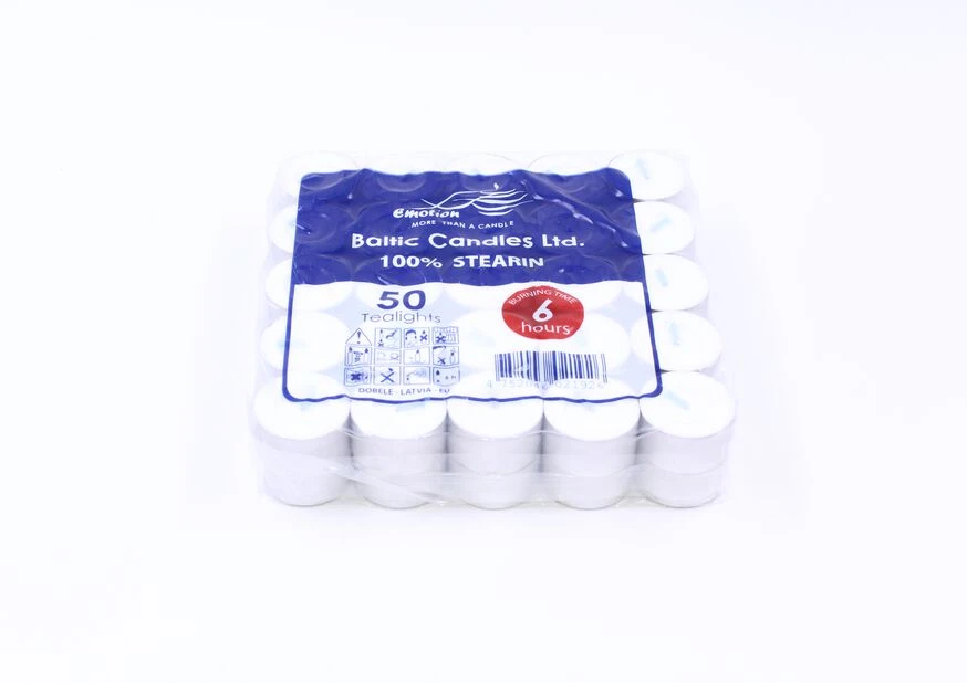 Tenn et stemningsskapende varmelys og len deg tilbake. Dette er en ekstra stor pakke med 50 lys, der hvert lys har en brennetid pÄ 6 timer. Fremstilt av stearin i aluminiumholder.