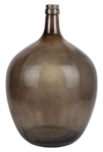 Stor unik vase i brunt glass som er rund i bunnen med avsmalnende topp, designet med inspirasjon fra gamle klassiske vinballonger. Vasen er like fin med tørkede blomster som pampasgress, som tom uten blomster hvor den gjør seg godt som fin innredningsdetalj. MĂĽl: Ă35 cm, høyde 52 cm.