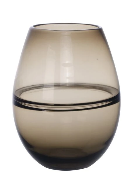 Moderne, høy vase i bruntonet glass og fint strukturmønster. Den stilrene designen passer for eksempel fint med en bukett vakre roser. Diameter: 17 cm, høyde: 23 cm.