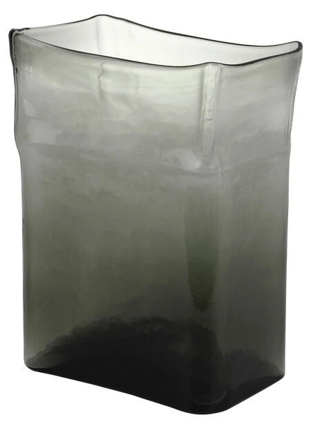 Transparent, rektangulær vase i sotet grått glass. Moderne vase som kompletterer dine blomstrende og frodige snittblomster og blir et vakkert blikkfang i hjemmet. Fås i to modeller med varierende høyde.