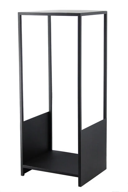 Hold orden på veden med et praktisk og dekorativt vedstativ i moderne design! Dette vedstativet er i svartmalt, robust metall med kvadratisk og dekorativ form. Foruten om oppbevaring av ved er dette vedstativet også like fint i den åpne spisestuen som ved sofaen til oppbevaring av eksempelvis aviser, magasiner og tidsskrifter.